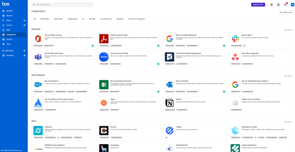 • Box Sign: Electronic signature functionality.