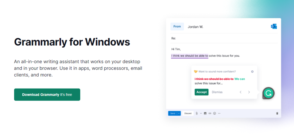 Grammarly offers applications for Windows and macOS, browser extensions for various desktop browsers, and an app for iPhone.
