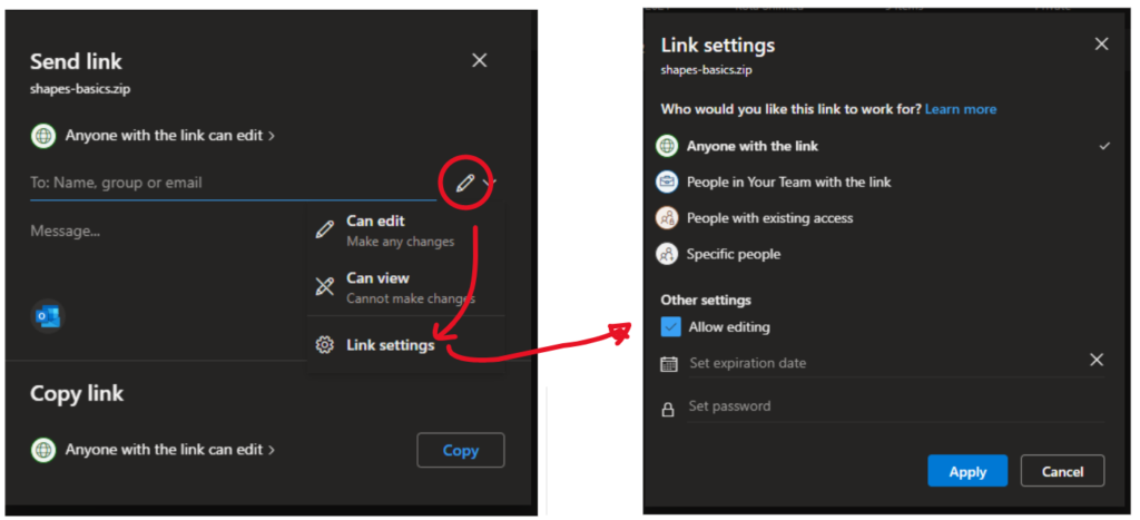 If you’re using OneDrive as part of a Microsoft 365 plan (rather than a standalone OneDrive plan), you can also set link expiration dates and passwords.