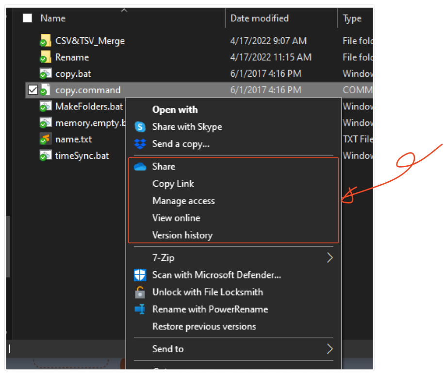 As mentioned earlier, OneDrive provides access to its menu through the “context menu”, which appears when you right-click on a file.