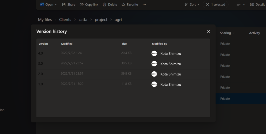 This allows you to quickly share files or check versions, as described later.