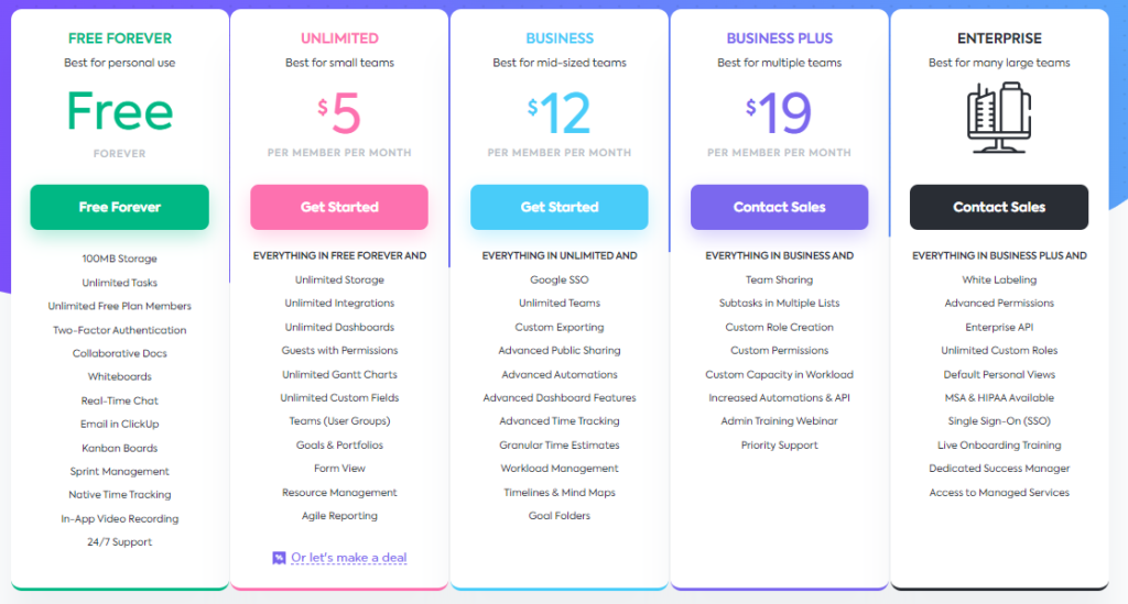 Source : The best work solution, for the best price. (https://clickup.com/pricing)