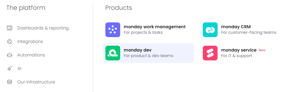 Similar to ClickUp, monday.com offers features like whiteboards and document management, and it also allows you to add specialized features for different uses, such as marketing, CRM, and system development.